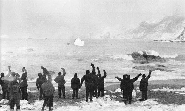 Gdy zbliżali się do celu, statek (nazwany Endurance) został uwięziony w lodzie.